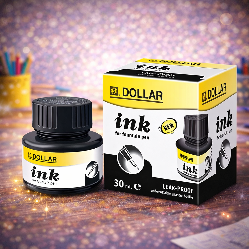 Dollar Ink Black 30ml is specially formulated for fountain pens to deliver a deep, rich black color with smooth and consistent ink flow. It dries evenly on paper, giving clear and sharp writing without clogging the pen. Ideal for students, professionals, and writing enthusiasts who value reliability and quality.