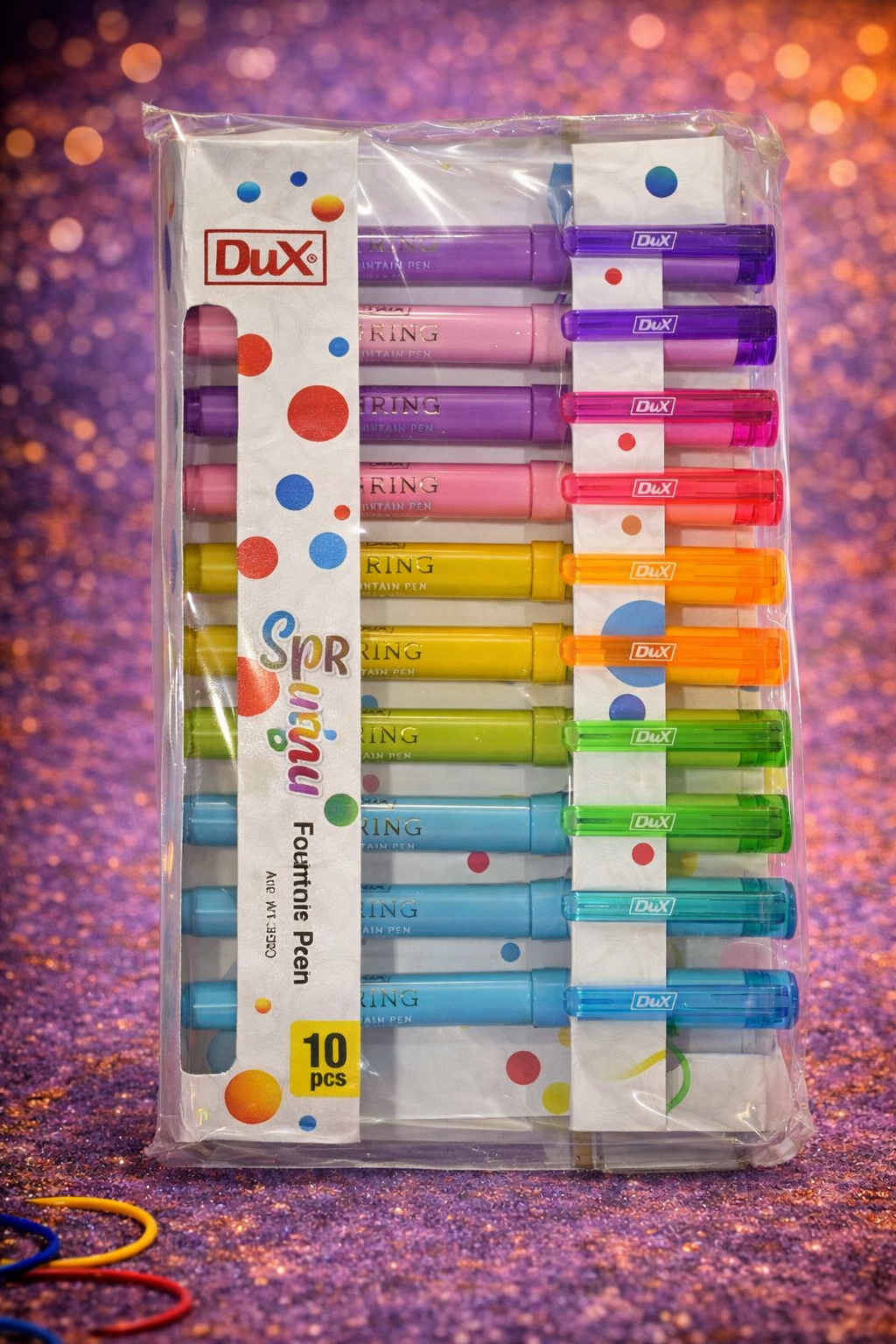 Add color and smoothness to your writing with DUX Spring Fountain Pens. Designed for effortless ink flow, these pens deliver clean, consistent lines that make writing comfortable and enjoyable. The vibrant color range makes them perfect for note-taking, creative writing, journaling, and schoolwork.