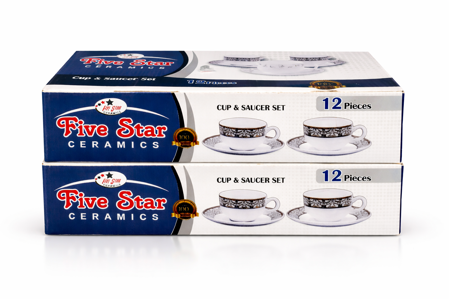 Five Star Ceramics Cup & Saucer Set – 12 Pieces Elegant Tea Set