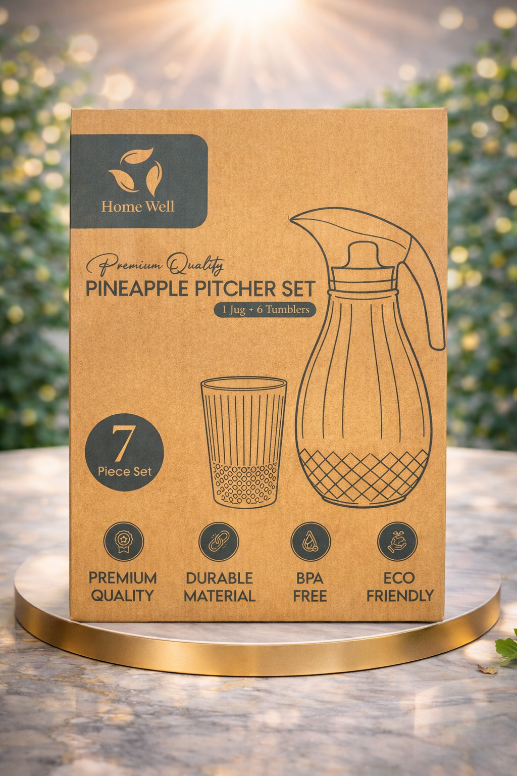 Upgrade your serving style with the Home Well Pineapple Pitcher Set, a premium 7-piece beverage serving set designed for everyday use and gatherings. This elegant set includes 1 stylish pitcher and 6 matching tumblers, making it perfect for serving water, juice, lemonade, iced tea, or other refreshing drinks.