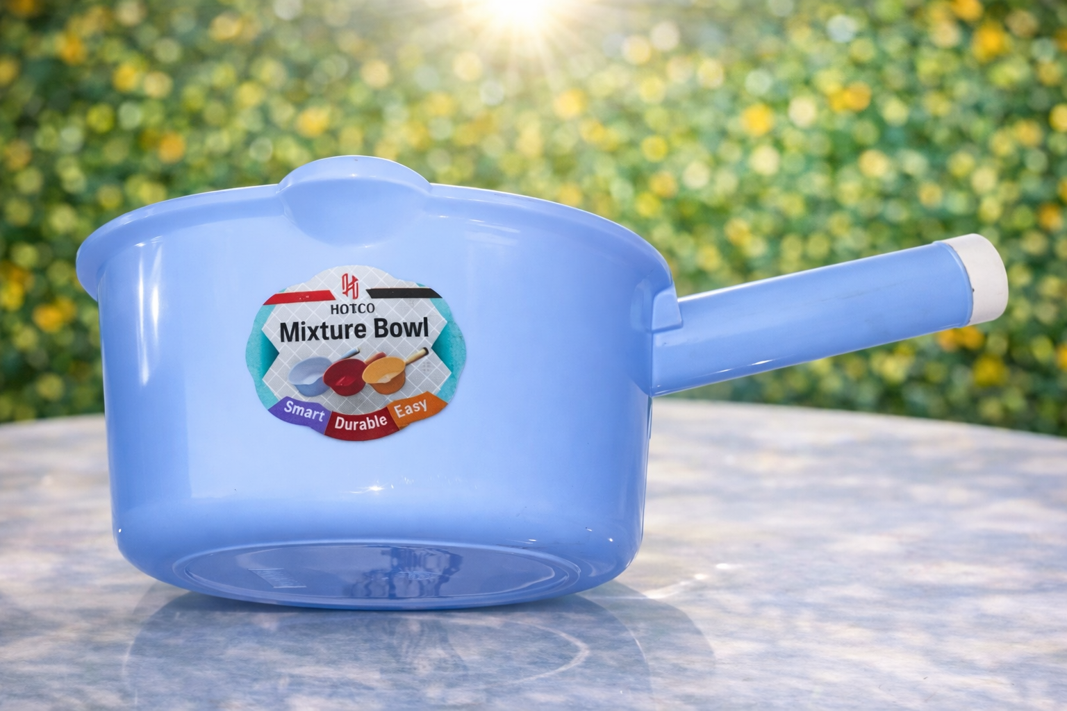 The Hotco Mixture Bowl with Handle is a practical kitchen tool designed for convenient mixing, pouring, and food preparation. Its durable plastic construction and ergonomic handle make it easy to use for a variety of kitchen tasks.