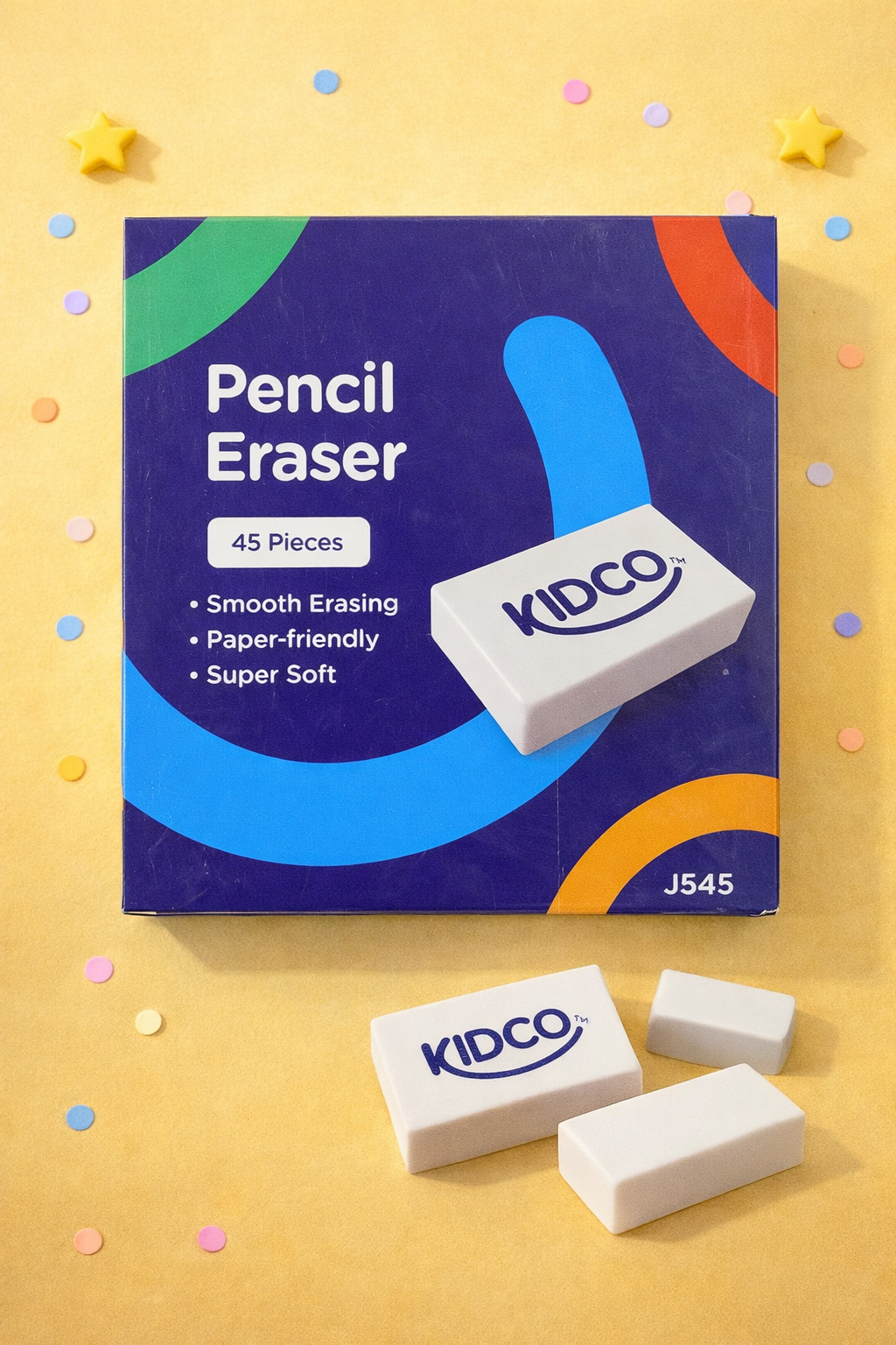 The Kidco Pencil Eraser is designed for clean, gentle, and effective erasing. Made with a super-soft formula, it removes pencil marks smoothly without damaging paper or leaving heavy residue.