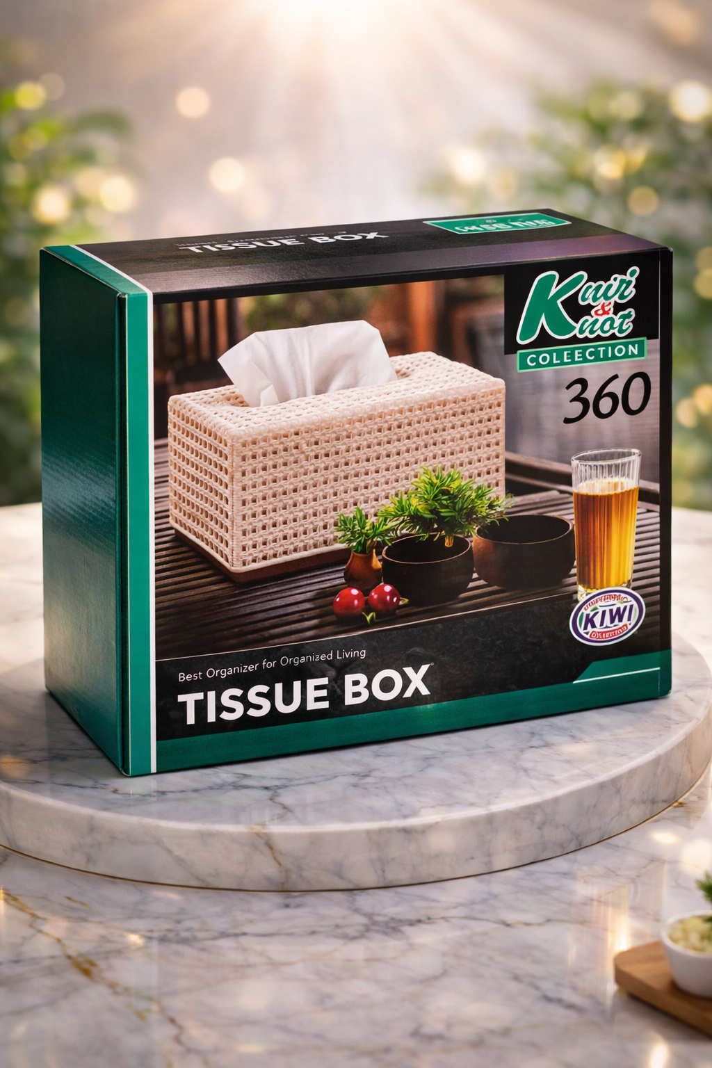 A stylish Kiwi & Karot Collection 360 tissue box holder designed to keep tissues organized and easily accessible.