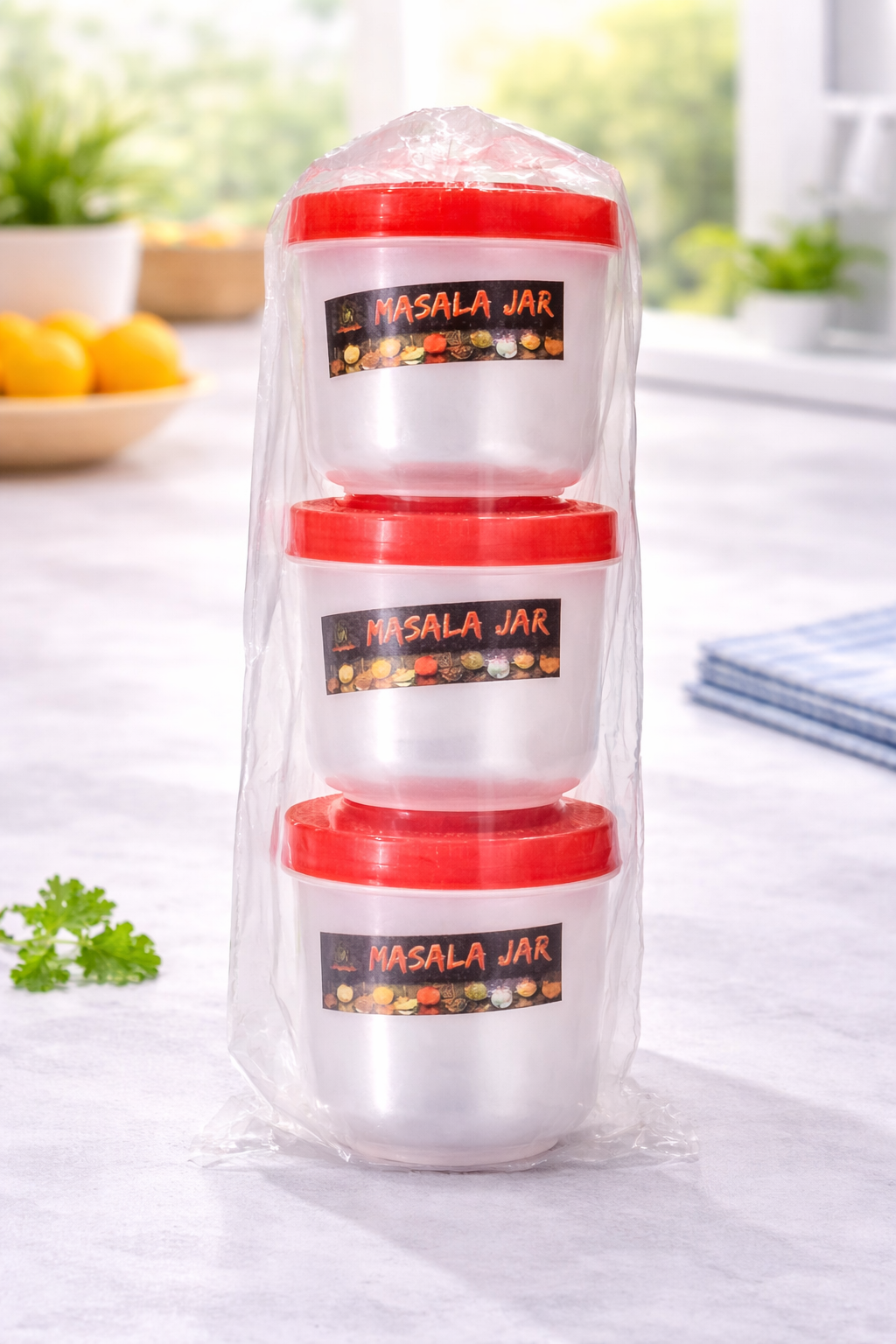 Keep your kitchen organized and your spices fresh with this Masala Jar Set (3 Pieces). Designed for everyday use, these compact containers are perfect for storing spices, herbs, salt, or small ingredients.
