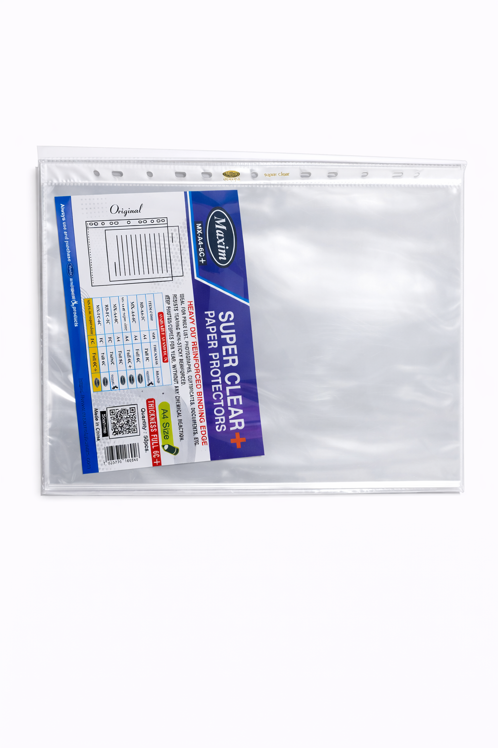 Protect your important documents with Maxim A4 Super Clear Sheet Protectors, designed for strong, long-lasting document storage. These heavy-quality transparent sleeves keep papers safe from dust, moisture, folding, and tearing while allowing clear visibility of the contents.