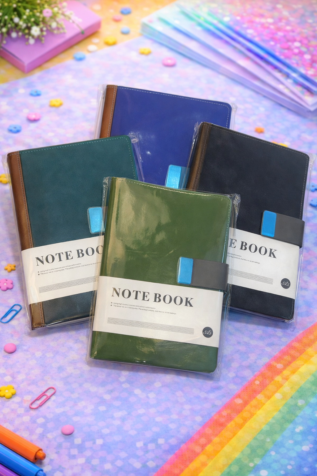 This premium leather-finish notebook is designed for those who value elegance, durability, and everyday functionality. Featuring a smooth faux-leather cover with neat stitching and a secure magnetic strap, it keeps your notes safe while adding a modern, professional look.