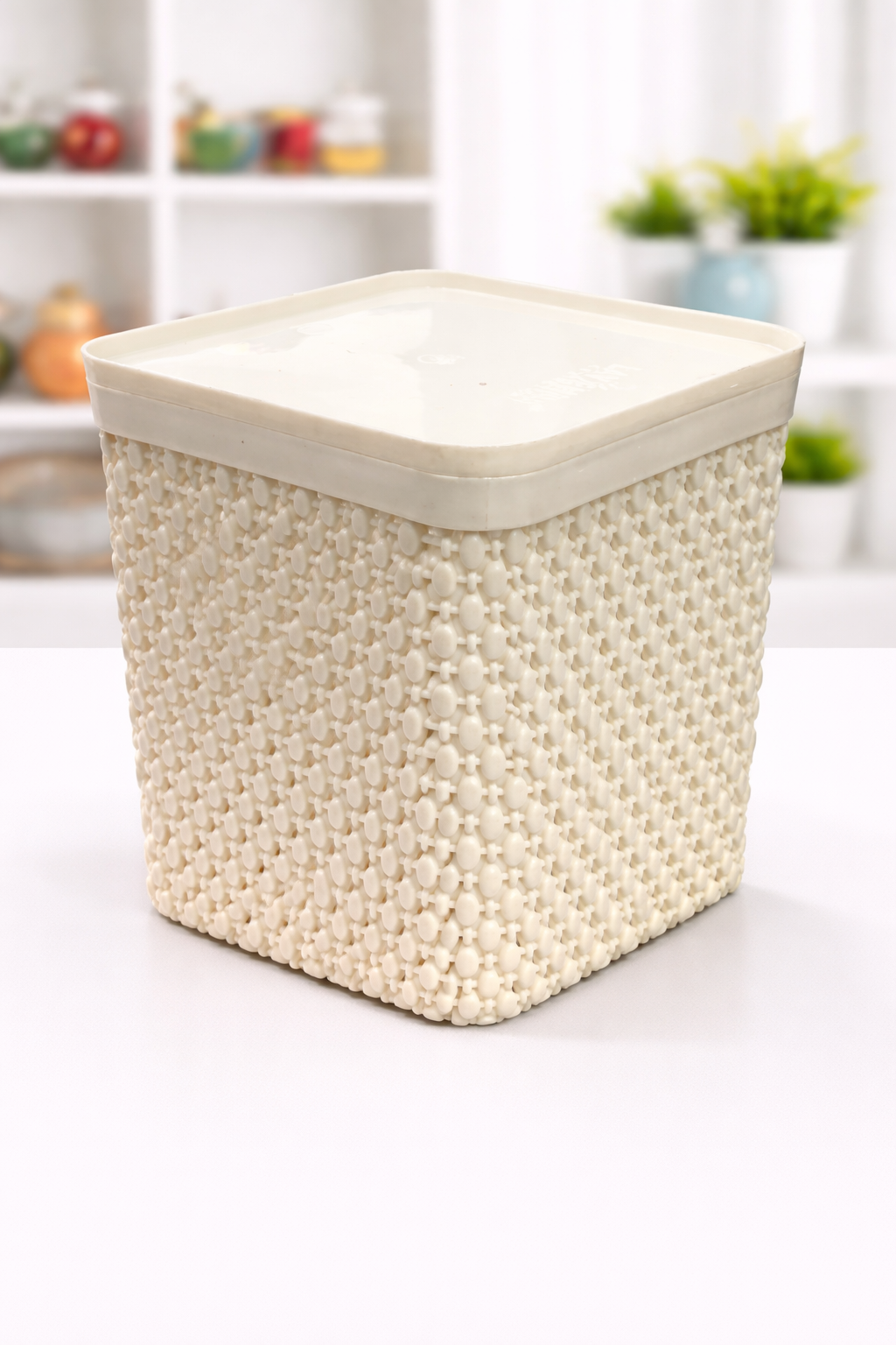 Stylish textured storage box with lid. Durable, space-saving, and perfect for organizing home and kitchen essentials.